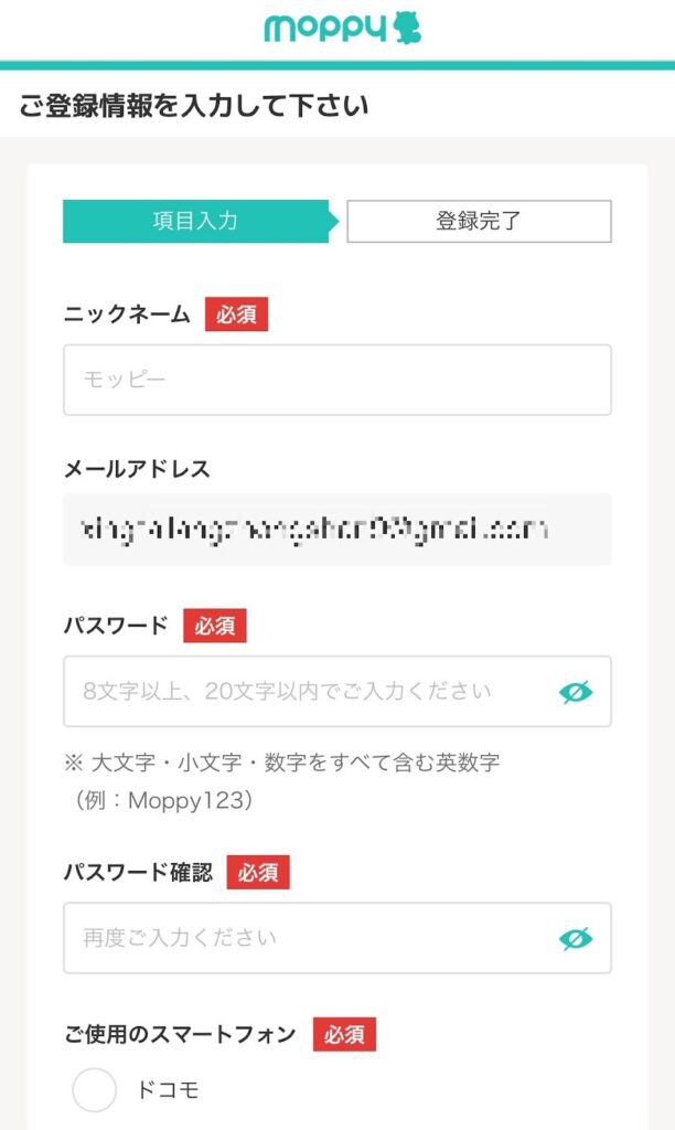 モッピーの登録は無料で、スマホでも簡単にできます。